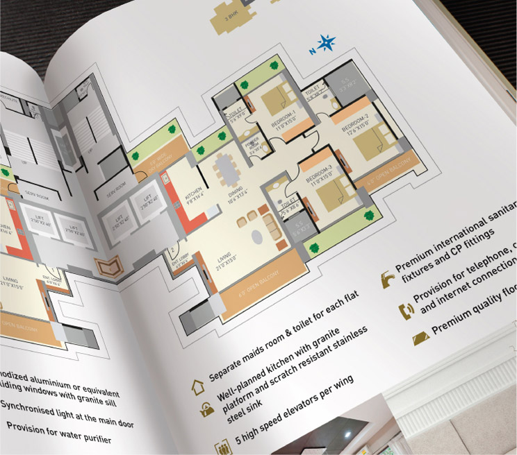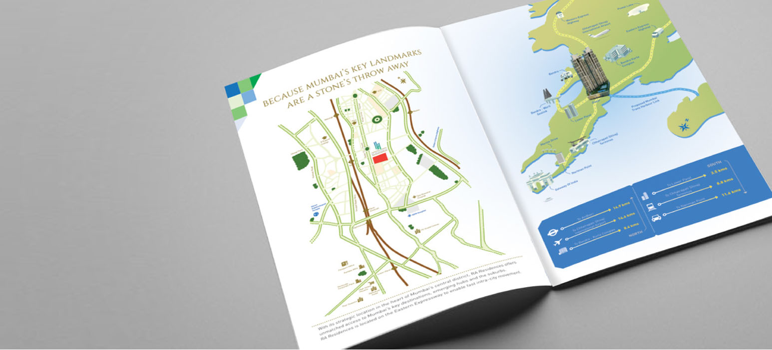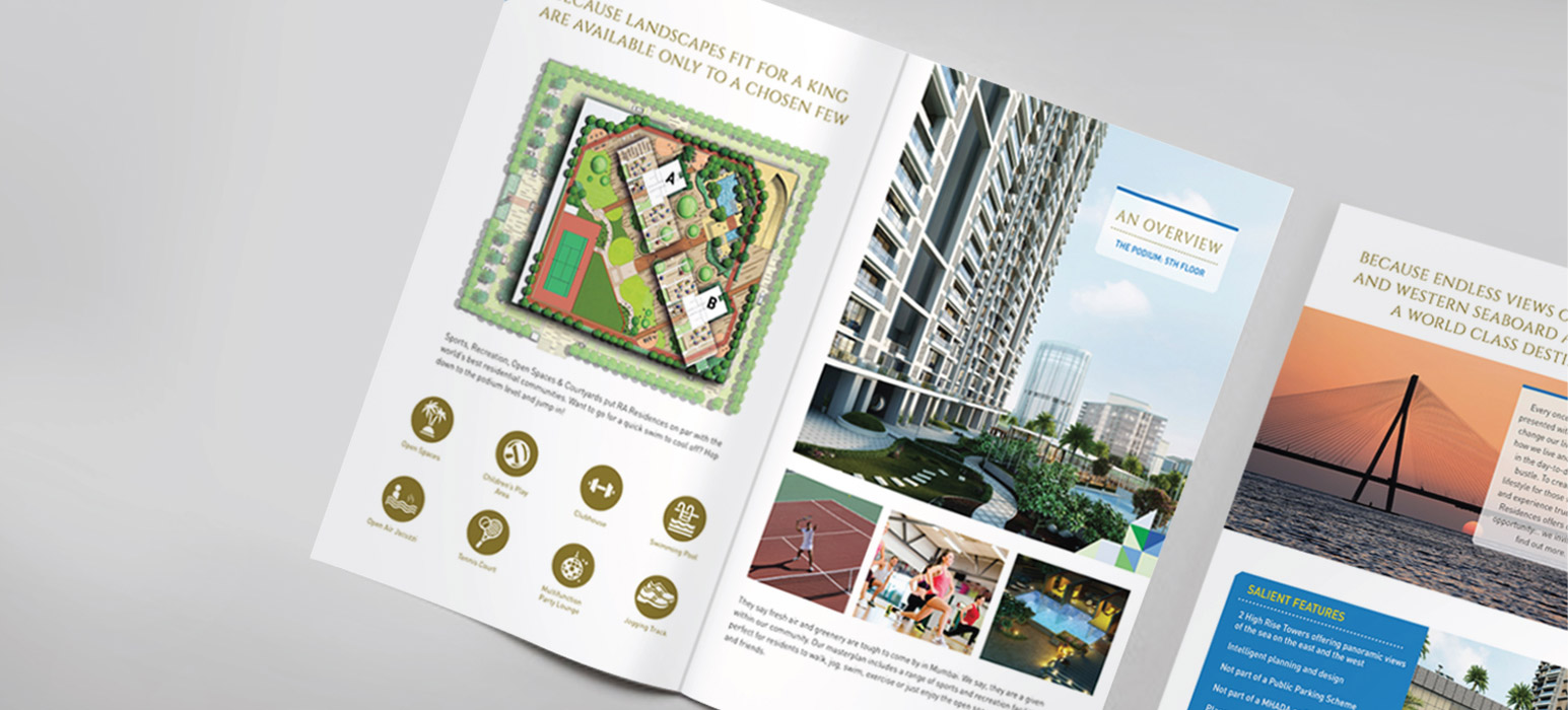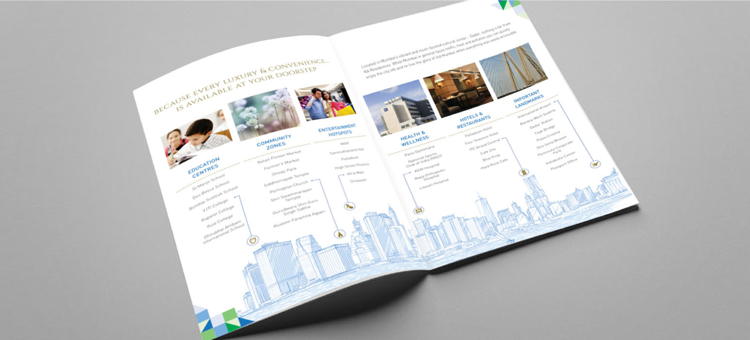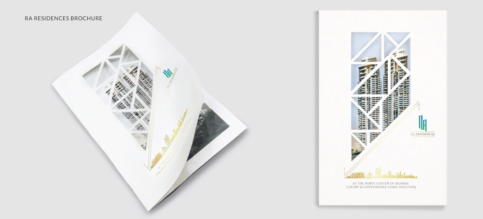 The Mumbai skyline is ever changing, with new high-rises popping up everyday. The competition among developers is intense. Within this context, the KBK Group approached Mindseye to develop the brand identity and print communication for its new project in central Mumbai. The brand RA Residences was born to reflect the contemporary, European style of the architect designing the actual complex. To differentiate communication and not sound like another “me too” high rise complex, the print communication was designed so the consumer can experience the actual tower design using laser, gold foil and other printing techniques.